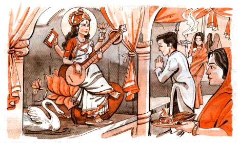 मां सरस्वती विद्या, संगीत और बुद्धि की देवी मानी गई हैं। देवीपुराण में सरस्वती को सावित्री, गायत्री, सती, लक्ष्मी और अंबिका नाम से संबोधित किया गया है। प्राचीन ग्रंथों में इन्हें वाग्देवी, वाणी, शारदा, भारती, वीणापाणि, विद्याधरी, सर्वमंगला आदि नामों से अलंकृत किया गया है। यह संपूर्ण संशयों का उच्छेद करने वाली तथा बोधस्वरूपिणी हैं। इनकी उपासना से सब प्रकार की सिद्धियां प्राप्त होती हैं। ये संगीतशास्त्र की भी अधिष्ठात्री देवी हैं। ताल, स्वर, लय, राग-रागिनी आदि का प्रादुर्भाव भी इन्हीं से हुआ है। सात प्रकार के स्वरों द्वारा इनका स्मरण किया जाता है, इसलिए ये स्वरात्मिका कहलाती हैं। सप्तविध स्वरों का ज्ञान प्रदान करने के कारण ही इनका नाम सरस्वती है। वीणावादिनी सरस्वती संगीतमय आह्लादित जीवन जीने की प्रेरणावस्था है। वीणावादन शरीर यंत्र को एकदम स्थैर्य प्रदान करता है। इसमें शरीर का अंग-अंग परस्पर गुंथकर समाधि अवस्था को प्राप्त हो जाता है।