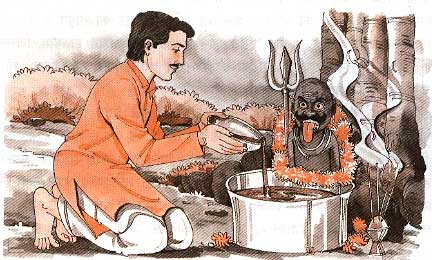 एक दिन संज्ञा के पुत्र शनि को तेज भूख लगी, तो उसने स्वर्णा से भोजन मांगा। तब स्वर्णा ने कहा कि अभी ठहरो, पहले मैं भगवान् का भोग लगा लूं और तुम्हारे छोटे भाई-बहनों को खिला दूं, फिर तुम्हें भोजन दूंगी।