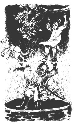 “शांत रहो,” घुड़सवार ने कहा, “और मेरी बात को बहुत ध्यान से सुनो। मेरा घोड़ा कुएं के उस पार छलांग लगाएगा। तुम्हारे नीचे पहुंचते ही मैं तुम्हारे पैर पकड़ लूंगा। उसी क्षण तुम पेड़ की टहनी को छोड़ देना। इस तरह तुम मेरे साथ घोड़े पर सुरक्षित रहोगे। समझे मेरी बात ?”
