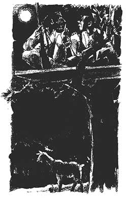 “चुप बैठो!” शिकारी ने फुसफुसाते हुए कहा। “इस तरह तुम पूरा बेड़ा ही गर्क कर दोगे !”