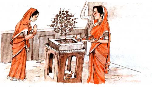 प्राचीन मान्यताओं के अनुसार हर हिंदू घर के आंगन में कम-से-कम एक तुलसी का पौधा अवश्य होना चाहिए। कार्तिक मास में तुलसी का पौधा लगाने का बड़ा माहात्म्य माना गया है स्कंदपुराण में लिखा है कि इस मास में जो जितने तुलसी के पौधे लगाता है, वह उतने ही जन्मों के पापों से मुक्त हो जाता है। पद्मपुराण में उल्लेख है कि जिस घर में तुलसी का उद्यान होता है, वह तीर्थ रूप होता है और उसमें यमराज के दूतों का प्रवेश नहीं होता। जिस घर की भूमि (आंगन) तुलसी के नीचे की मिट्टी से लिपी रहती है, उसमें रोगों के कीटाणु प्रवेश नहीं करते।
